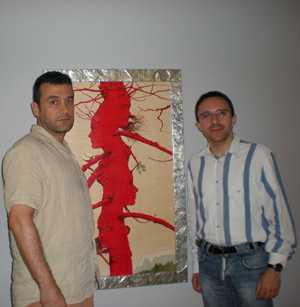 L'ass. C.Tommasini (a ds.) assieme all'artista P.Rossetto e ad una delle sue opere.