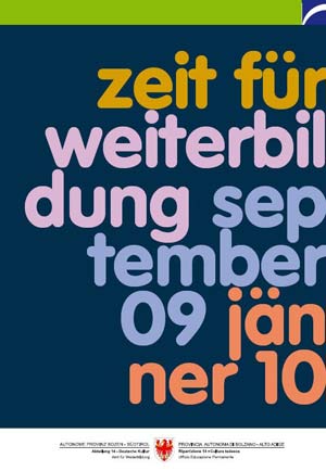 La pubblicazione "zeit für weiterbildung" pubblicata ormai da anni dall'Ufficio educazione permanente della Ripartizione cultura tedesca ha due uscite annuali, in gennaio ed in agosto. Da giovedì prossimo, 20 agosto, sarà disponibile il volume con i corsi del prossimo autunno.