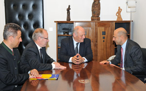 Durnwalder con i presidenti Klaus Stocker (SEL, a sinistra) e Giovanni Mancini (ENEL Produzione, a destra) nell'incontro a Palazzo Widmann (Foto USP/Pertl)