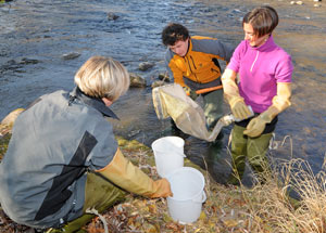 Il campionamento per l'analisi biologica dell'acqua del Talvera (Foto:USP/A.Pertl)