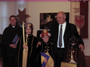 Come da lunga tradizione, vestiti da Re Magi oltre 6mila ragazzini di tutte le parrocchie altoatesine girano di casa in casa tra il 27 dicembre e l'Epifania per annunciare la nascita del Bambino e raccogliere offerte destinate a progetti in favore di bambini meno fortunati. Al presidente Durnwalder ha fatto visita stamattina a Palazzo Widmann una delegazione di Re Magi della parrocchia del Duomo di Bolzano.