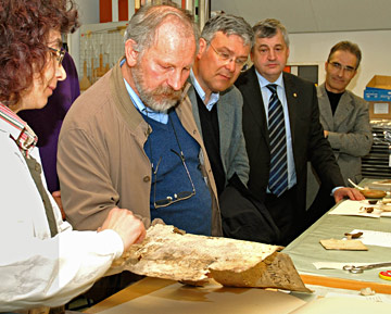 L'assessore provinciale Florian Mussner, accompagnato da alcuni rappresentanti del mondo scolastico e culturale ladino, ha visitato oggi (7 aprile) la sede di Bolzano dell'Archivio provinciale. "E' importante conservare e valorizzare la documentazione - ha sottolineato Mussner - perchè rappresenta un pezzo importante di storia ladina".