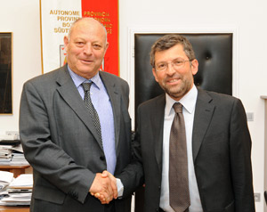 Lo stato di fatto dell’attività attorno alla realizzazione del tunnel di base del Brennero, l’avvio della costruzione delle opere principali, la progettazione complessiva dell’opera: sono stati tra i punti approfonditi a Bolzano dal presidente della Provincia Luis Durnwalder con Raffaele Zurlo, amministratore italiano della società europea Galleria di Base del Brennero (BBT SE), giunto in visita di presentazione.