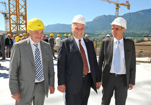 Mussner, Durnwalder e Theiner durante il sopralluogo al cantiere dell'ospedale di Bolzano