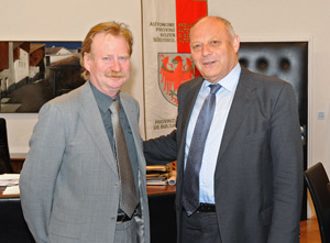 Pizzato guida da qualche mese la filiale di Bolzano dell'Agenzia delle Entrate, che attualmente risulta accorpata alla sede di Trento. "Si tratta di una soluzione provvisoria - ha spiegato Durnwalder - in attesa di trovare un'intesa definitiva sulla sede di Bolzano". L'incontro di oggi (2 settembre) a Palazzo Widmann, non si è limitato alla presentazione del neo-direttore, ma ha affrontato una tematica importante, ovvero i rimborsi degli arretrati fiscali alle imprese altoatesine da parte dell'Agenzia delle entrate. "Stiamo parlando di grosse cifre - ha sottolineato il presidente della giunta provinciale - nell'ordine dei 500 milioni di euro: soldi che mancano nelle casse delle nostre aziende". Ildebrando Pizzato ha assicurato che l'Agenzia delle entrate farà tutto il possibile per accelerare le procedure.