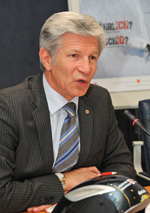 L'assessore provinciale al turismo Hans Berger presenta le iniziative per sensibilizzare alla sicurezza sulle piste da sci. FOTO: USP/A.Pertl)
