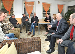 Il presidente Durnwalder a colloquio con gli ospiti della Casa dell'ospitalità Caritas di Bolzano (FOTO: USP/A.Pertl)