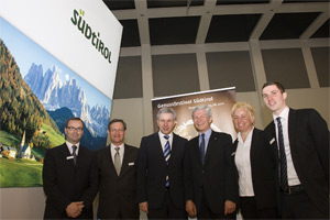 Presenti allo stand dell’Alto Adige, oltre all’assessore Hans Berger, il sindaco di Berlino, Klaus Wowereit, il direttore del Consorzio altoatesino dello Speck, Michael Desaler, il presidente di Alto Adige Marketing, Reinhold Marsoner, ed il presidente del Consorzio dei vini dell’Alto Adige, Armin Dissertori.