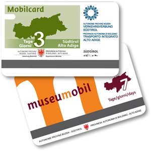 La Mobilcard consente di viaggiare a bordo dei mezzi del trasporto pubblico in Alto Adige, sia autobus che treni. Sono inclusi i Citybus, le linee autobus urbane ed extraurbane, diverse funivie e tutti i treni regionali (l'offerta per 3 giorni consecutivi è di 18 Euro, per 7 giorni di 22 Euro).