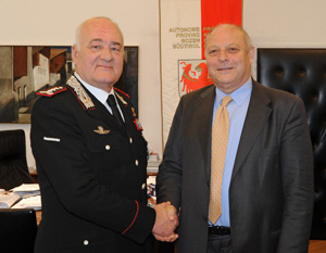 La collaborazione nei settori sicurezza pubblica e Protezione Civile, nonché la sistemazione dei Carabinieri sono stati i temi centrali discussi oggi, venerdì 1° aprile 2011, dal presidente della Provincia Luis Durnwalder assieme al Generale di Corpo D'Armata Massimo Iadanza, Comandante del Comando Interregionale del Nord-Est, che gli ha reso visita a Palazzo Widmann a Bolzano.