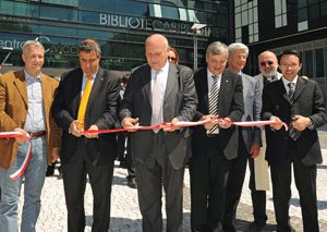 Luis Durnwalder e gli assessori Florian Mussner, Christian Tommasini e Hans Berger nella mattinata di oggi, 19 maggio 2011, hanno consegnato ufficialmente la scuola professionale per le professioni sociali di lingua italiana, il centro culturale con biblioteca, il convitto, il garage interrato e la nuova piazza realizzati nell'ambito del primo lotto per il Centro di quartiere "Rosenbach" di Oltrisarco/Aslago a Bolzano.