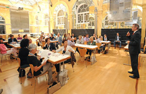 L'assessore provinciale Michl Laimer apre i lavori dell'incontro informativo per amministratori in vista della Giornata senz'auto 2011. (FOTO:USP/A.Pertl)