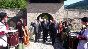 Günther Platter, Lorenzo Dellai e Luis Durnwalder al loro arrivo a Castel Thun.