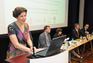 Il giorno successivo all’istituzione ufficiale del GECT, i relatori hanno presentato e discusso le basi teoriche ed i fondamenti del diritto europeo in materia. Come ha sottolineato Anna Gamper dell’Università di Innsbruck si tratta di uno scambio pratico, ma anche scientifico che deve aumentare le possibilità di risolvere le proprie questioni interne avvalendosi del confronto con le realtà vicine. Lo sguardo oltre il confine contribuisce ad incrementare la creatività nella ricerca di soluzioni.