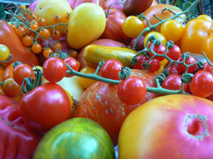 I cuochi Anni Matscher del ristorante "Zum Löwen" di Tesimo e Herbert Hintner del ristorante "Zur Rose" di Appiano hanno preparato piatti estivi impiegando alcune varietà di pomodori.