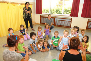 I bambini che presso la Scuola per l'infanzia "Airone" in via Aosta 43 a Bolzano partecipano all'iniziativa di avvicinamento alle lingue tedesco, italiano ed inglese, nella mattinata di oggi, giovedì 11 agosto 2011, hanno ricevuto la visita del vicepresidente della Provincia Christian Tommasini e della Sovrintendente scolastica italiana Nicoletta Minnei.