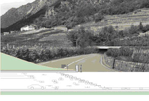 Il progetto vincitore presenta soluzioni di viabilità ben elaborate; il tracciato è armonioso e fluido. I portali sono stati risolti bene dal punto di vista architettonico, riprendendo e interpretando in modo coerente il paesaggio terrazzato. Il progetto è strutturato in 3 fasi lavorative. La 1a fase operativa è accentrata sugli interventi più urgenti, lo scavo da est a ovest. Come 2a fase di interventi prevede la realizzazione delle vie di fuga e come 3a fase è prevista la costruzione delle intersezioni.