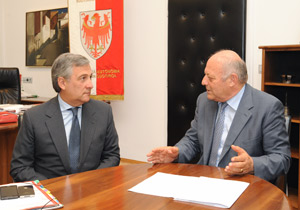 Parole di elogio per l'Alto Adige da parte del vicepresidente della Commisione Europea Antonio Tajani, che questa mattina (8 settembre) ha incontrato a Bolzano il presidente della Giunta provinciale Luis Durnwalder. "L'Europa deve tornare all'economia reale - ha detto Tajani - e l'Alto Adige è un modello da seguire con il suo tessuto di piccole e medie imprese artigiane, industriali e turistiche".