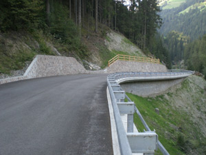 Attualmente si procede nella esecuzione dei muri di monte del tratto comprso fra il km 1+320 ed il km 1+600 circa, mentre il lato valle è già completato.