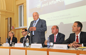 Dopo i saluti da parte del presidente della Provincia, Luis Durnwalder, vi sono stati gli interventi di Sibylle Seyr, Servizio giuridico del Parlamento Europeo, Lussemburgo, sul tema La Corte di Giustizia dell’Unione Europea e la Provincia di Bolzano; di Walter Obwexer, professore presso l’Istituto di diritto europeo ed internazionale dell’Università Leopold Franzens di Innsbruck “L’autonomia dell’Alto Adige e l’Unione Europea”, Klaus‐Dieter Borchardt, direttore nella Direzione Generale Agricoltura della Commissione Europea e Professore onorario all’Università di Würzburg “L’Unione Europea come comunità di diritto e di valori”.