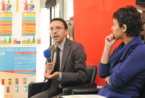 Il vicepresidente della Provincia Christian Tommasini presenta la nuova stagione di spettacoli "Firmian il tuo futuro2" assieme a Gaia Carroli, direttrice del Teatro Cristallo (FOTO: USP/A.Pertl)