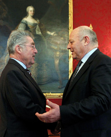 Dopo aver incontrato questa mattina il Ministro degli esteri Michael Spindelegger (vedi comunicato a parte), e aver partecipato in qualità di relatore assieme all'ex cancelliere Wolfgang Schüssel ad un convegno della Società austriaca di politica estera, il presidente della Giunta provinciale Luis Durnwalder è stato ricevuto questo pomeriggio a Hofburg dal presidente Heinz Fischer. Così come nel precedente colloquio con Spindelegger, anche con Fischer la discussione è ruotata attorno ai rapporti fra Roma e Bolzano nell'ambito della manovra del governo Monti per il risanamento dei conti pubblici.
