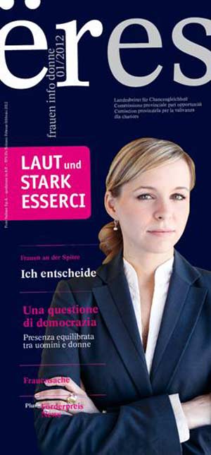 Il primo numero nel 2012 di “ëresFrauenInfoDonne”, la pubblicazione della Commissione provinciale per le pari opportunità, è in uscita nella Giornata internazionale della Donna, 8 marzo. Tema pinicpale "Una questione di democrazia. Presenza equilibrata tra uomini e donne" a cui nella rubrica "ich entscheide" si aggiunge l'intervista ad una donna in posizione apicale, l'assessora provinciale Sabina Kasslatter Mur