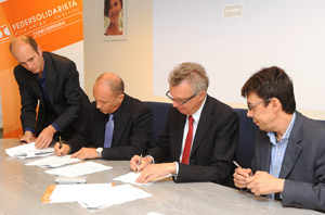 L'assessore provinciale al lavoro Roberto Bizzo, oggi giovedì 26 aprile 2012, presso la sede di Federsolidarietà a Bolzano, ha partecipato alla formalizzazione della firma del protocollo d'intesa stipulato fra tutti gli enti che in Alto Adige si occupano dell'inserimento lavorativo di persone svantaggiate o escluse dal mondo del lavoro.