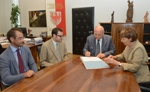 Il presidente Durnwalder e il neopresidente dell'Agenzia, Thomas Mathà, firmano l'accordo che la rende operativa (Foto Pertl)