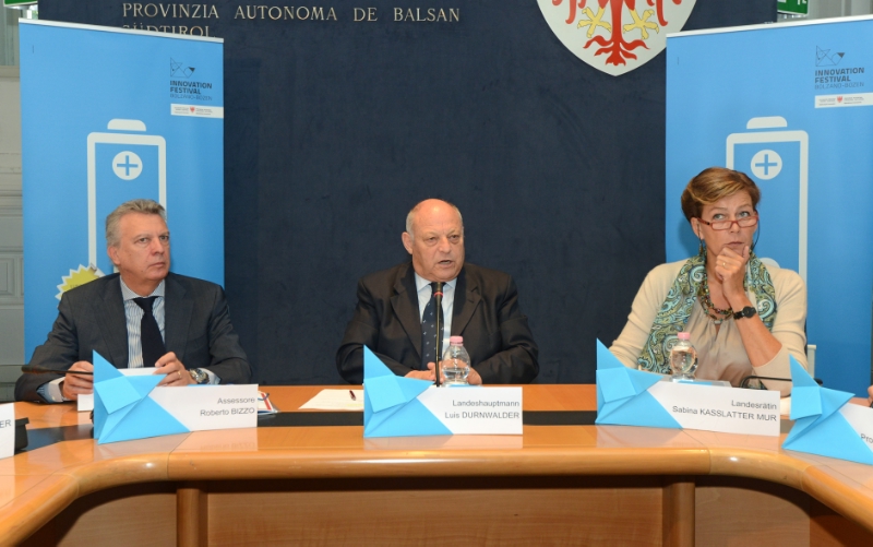 Il conto alla rovescia per l'Innovation Festival è ormai iniziato: fra una ventina di giorni, dal 27 al 29 settembre, Bolzano diventerà la capitale dell'innovazione. 14 location, 50 appuntamenti, 100 relatori: il programma ufficiale è stato presentato questa mattina (6 settembre) dal presidente della Giunta provinciale Luis Durnwalder e dagli assessori Roberto Bizzo e Sabina Kasslatter Mur.