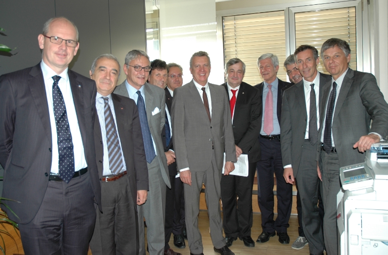 Relazione finale sul rafforzamento dell'economia: gli assessori Bizzo, Mussner, Berger e Widmann con i vertici delle banche locali