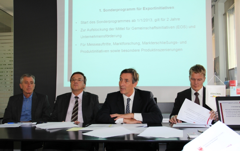 Tra i punti del pacchetto figura il rafforzamento dell'export attraverso un incremento di 1,7 milioni di euro dei mezzi a disposizione di EOS (complessivamente 8,6 milioni) e una maggiore partecipazione a fiere, ricerche di mercato, presentazione di prodotti, "con l'obiettivo di aprire la strada a nuovi mercati e nuove nicchie", ha detto Widmann. Verrá creato anche un fondo per l'export per coprire il rischio delle imprese legato alle operazioni di esportazione: dotato di 5 milioni di euro, il fondo provinciale è in grado di concedere garanzie fino a 50 milioni.