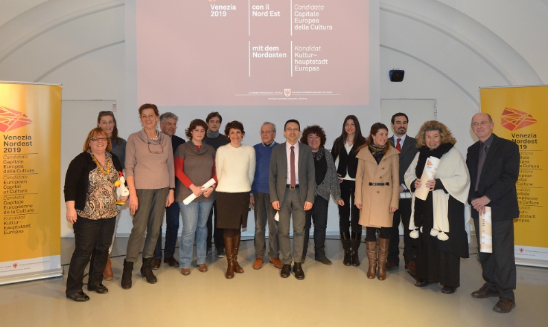 Sono 38 i progetti presentati dalle associazioni culturali dei tre gruppi linguistici che hanno partecipato al concorso di idee indetto dalla Provincia per lo sviluppo di progetti a sostegno della candidatura dell’Alto Adige con Venezia e il Nordest a Capitale europea della cultura 2019. Una giuria ne ha selezionati 10, premiati oggi (18 febbraio) a Bolzano dagli assessori provinciali alla cultura Christian Tommasini e Sabina Kasslatter Mur con 4.500 euro ciascuno.
