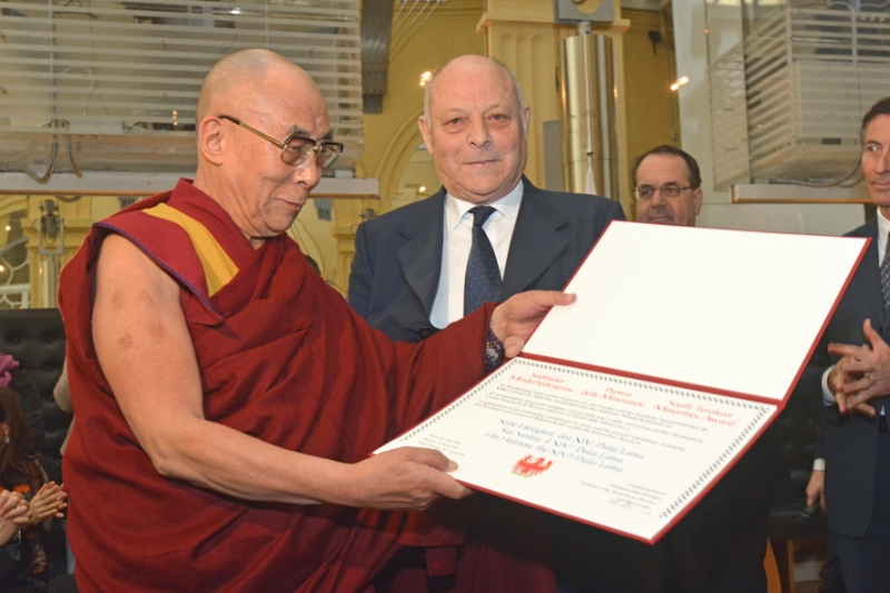 Il Dalai Lama si è detto "onorato di poter ricevere questo premio da parte di chi da anni ci sostiene", e ha ringraziato la Giunta provinciale "a nome di tutti coloro che nel mondo rappresentano le minoranze e lottano per i loro diritti". Nel suo intervento la guida spirituale del popolo tibetano ha sottolineato che "anche noi stiamo provando a raggiungere quello che si è fatto in Alto Adige, ovvero un modello di autonomia "reale", e non solo sulla carta, che si dimostra in grado di portare benefici anche dal punto di vista economico e sociale, e non solo politico".