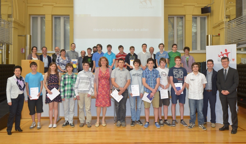 Gli studenti delle scuole superiori in lingua tedesca che si sono distinti alle competizioni proposte a livello nazionale, le cosiddette Olimpiadi nelle materie matematica, fisica, chimica e informatica, sono stati insigniti dall'assesora provinciale Sabina Kasslatter Mur e dall'Intendente scolastico Peter Höllrigl.