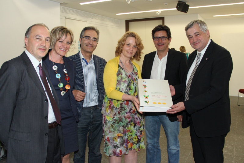 Hanno preso parte alla presentazione del materiale didattico, oltre all'assessore, l'intendente scolastico Roland Verra, la direttrice dell'asilo, Hannelore Insam, il linguista Theodor Rifesser, l'ispettrice Edith Ploner,ed  il professor Rico Cathomas, l'assessore Mussner.
