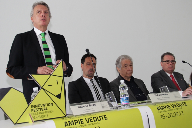 "Ampie vedute - Montagna. Società. Tecnologia" è il tema dell’edizione 2013, la seconda, dell’Innovation Festival. Oggi (28 giugno) al Museion di Bolzano l’assessore provinciale all’innovazione Roberto Bizzo ha fornito un’anteprima della grande kermesse del 26-28 settembre: 60 eventi in 10 luoghi di Bolzano, oltre 100 relatori, un programma di 24 ore tutto dedicato alle scuole."Vogliamo discutere di coesione sociale e ambiente alpino, essenziali per il nostro futuro, e favorire la crescita di un ecosistema sostenibile legato all'economia del territorio", ha detto Bizzo.
