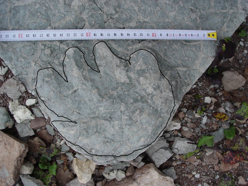 Questo tipo di impronte chiamato Pachypes dolomiticus è abbastanza diffuso nelle Arenarie di Val Gardena e viene attribuito a un rettilie primitivo chiamato Pareiasauro. Durante il Permiano superiore, intorno ai 253 milioni di anni fa, questi bestioni erano diffusi a livello mondiale ed erano così per dire le "mucche" del Permiano.