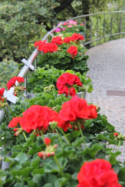 I pelargoni sono notoriamente conosciuti con il nome di "gerani" o in linguaggio popolare anche con il nome di "Brennende Liab" (trad. "amore focoso"). 100 varietà diverse di questi fiori al momento fioriscono lungo la Passeggiata di Sissi nei Giardini di Castel Trauttmansdorff. Qui la più tipica delle piante da balcone si mostra in diversi e rari colori.