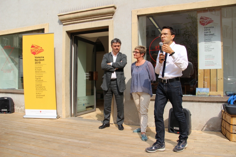 "Atelier Europa è un progetto estremamente innovativo - ha sottolineato l'assessore alla cultura italiana Christian Tommasini - perchè mette a disposizione degli interessati spazi in cui lavorare e collaborare. Inoltre, nello storico edificio nel pieno centro della città di Bolzano, vi sarà una sorta di punto informativo sulla candidatura a Capitale europea della cultura 2019". A tale proposito, Tommasini ha annunciato che il 20 settembre Venezia e il Nord-Est presenteranno a Roma il proprio dossier. Attualmente, le altre città che hanno ufficializzato la propria candidatura (nel 2019 la capitale sarà in Italia) sono Siena, Ravenna, Urbino, Bergamo, L'Aquila, Mantova, Taranto, Perugia-Assisi, Matera, Palermo, Caserta, Lecce, Torino, Aosta e Reggio Calabria. Ancora in dubbio, invece, Amalfi, Terni, Catanzaro, Milano e Cagliari.