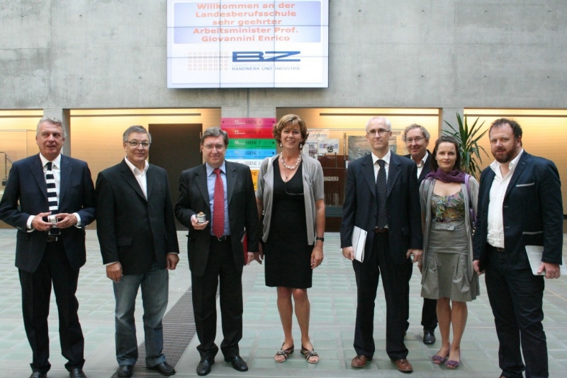 Il ministro del lavoro Enrico Giovannini ha dimostrato molto interesse per il sistema formativo provinciale nel campo della formazione professionale ed ha visitato, tra l’altro, la scuola per il commercio e l’industria di lingua tedesca di Bolzano.