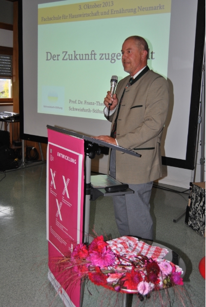 Il prof. Franz Theo Gottwald ha tenuto una relazione nel corso della cerimonia per i 30 anni della scuola di Egna