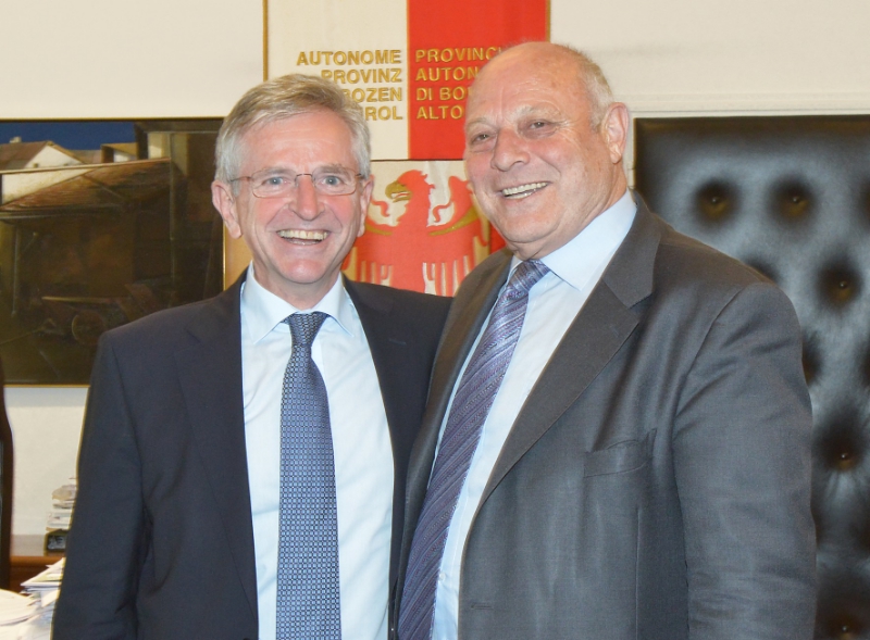 Il presidente della Provincia ha ricevuto questo pomeriggio a palazzo Widmann il vicepresidente della Banca Europea degli Investimenti, Wilhelm Molterer, in procinto di prendere parte all'Italian German Business Forum in corso a Bolzano.