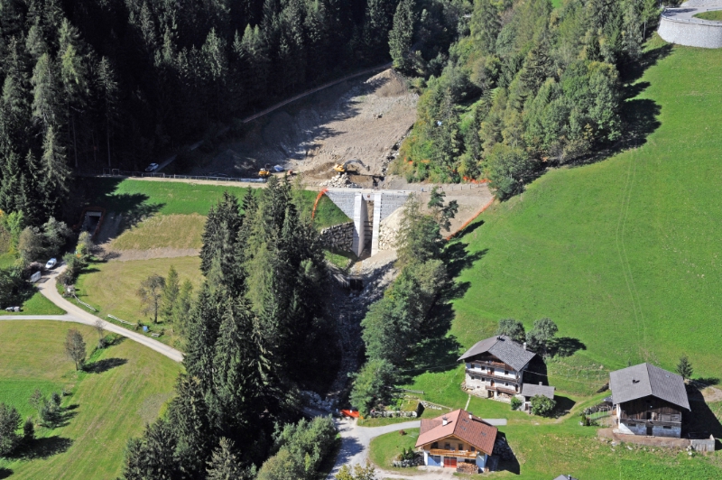 Con quattro lotti di interventi nel Comune di Vandoies sopra l'bitato di Vallarga, al cantiere lungo il torrente Köglbach l'Ufficio sistemazione bacini montani est ha realizzato una briglia per la protezione dalle frane abbinata da uno sbarramento paravalanghe.