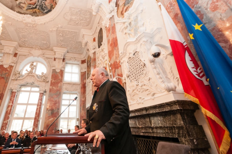 Nel suo intervento di ringraziamento il presidente Durnwalder ha sottolineato di considerare l'onorificienza non un merito personale, "ma un riconoscimento a tutto l'Alto Adige" e ha ribadito che negli anni di attività politica ha sempre cercato di fare il suo dovere, "lavorando per tutelare gli interessi comuni di Alto Adige e Tirolo." Durnwalder ha poi ricordato che "senza il sostegno dell'Austria e del Tirolo l'autonomia altoatesina non sarebbe arrivata fin dove è oggi: un territorio con alti livelli di benessere, con una minoranza che non ha più bisogno di sostegno materiale bensì di unità di intenti." Il Presidente della Provincia ha infatti osservato che nei passati decenni il rapporto tra Alto Adige e Tirolo è cambiato: "Oggi siamo partner, la collaborazione transfrontaliera nell'Euregio ci ha reso più europei e ci permette di farci sentire a Bruxelles."