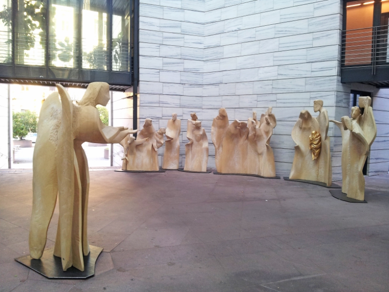 Il presepe in legno è opera degli scultori gardenesi Filip Moroder di Ortisei e Thomas Comploj di Santa Cristina.