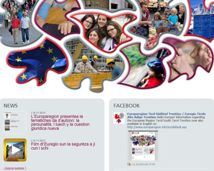 Accanto alle versioni in lingua tedesca ed italiana ora la pagina web dell'Euregio Tirolo-Alto Adige-Trentino è disponibile anche nelle versioni ladina ed inglese. In lingua ladina ed in lingua inglese sono stati tradotti contesti generali con dati riferiti all'Euroregione, nonché informazioni su organismi e funzioni, nonché notizie e comunicazioni d'interesse.