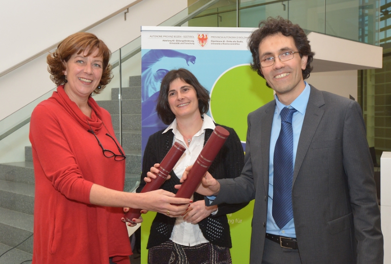 L'assessora provinciale alla ricerca Sabina Kasslatter Mur oggi pomeriggio presso il Museion a Bolzano ha consegnato il primo Premio di ricerca ed il primo Premio scientifico dell'Alto Adige. La prima edizione dei premi, che ha avuto 24 candidati, vede vincitori rispettivamente Barbara Beikircher, dell'Istituto di botanica dell'Università di Innsbruck, e Diego Calvanese, della Facoltà di informatica della Libera Università di Bolzano.