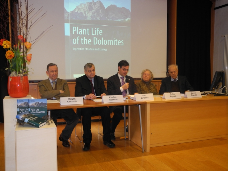 La nuova pubblicazione scientifica "Plant Life of the Dolomites" di Erika e Sandro Pignatti, presentata oggi 6 febbraio 2014 al Museo di Scienze Naturali dell'Alto Adige a Bolzano, descrive il paesaggio e la vegetazione dell'intera area dolomitica e offre informazioni sulla genesi della flora alpina arrischiando di delinearne lo sviluppo futuro.