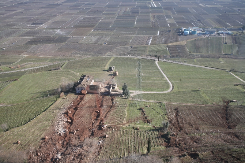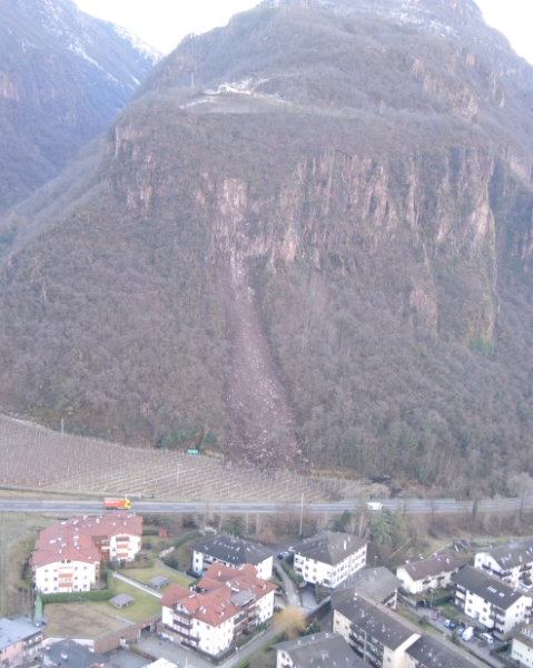La frana di Termeno con gli enormi massi che hanno sfiorato una casa